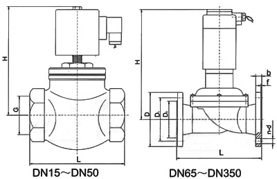 本閥DNl5—50系一次開閥的直動式低壓電磁閥,DN65—300系二次開閥的先導(dǎo)式電磁閥。直動式電磁閥在接受電信號后,電磁力直接將閥塞提起,介質(zhì)流通;斷電后,電磁力消失,閥塞在自重和彈簧力作下下落,介質(zhì)斷流。