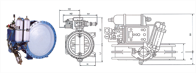 3、本閥的電液控制系統(tǒng)具有遠(yuǎn)程控制功能,蝶板任意速度的開(kāi)啟與關(guān)閉以及任意位置的鎖定均可通過(guò)設(shè)計(jì)合理的各類(lèi)液壓控制閥輕松實(shí)現(xiàn)。