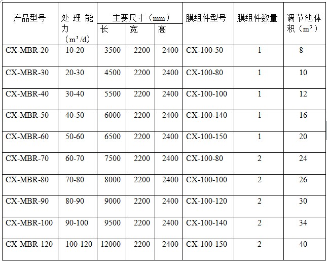 一體化智能(MBR)凈化成套設(shè)備產(chǎn)品列表: