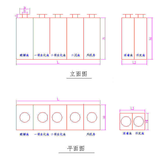 2、安裝:根據(jù)安裝圖就位,各箱體依次就位,箱體的位置、方向不能放錯,互相間距必須準確,并連接好管道。在設備內(nèi)注入清水,檢查各管道有無滲漏,若無則箱體四周覆土,直至設備檢查孔,并平整地面。把電控箱控制線與水泵接通,電控箱與電源接通,接線時注意風機、電機的轉(zhuǎn)向,必須與風機所指方向相同。