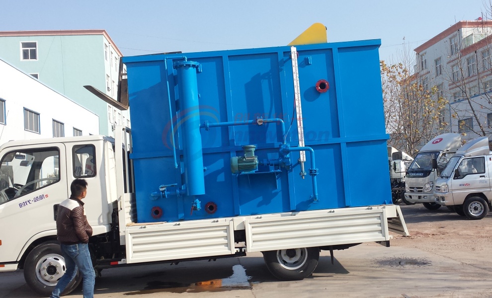 該設備充氣段由尼可尼泵來完成,處理后清水回流至尼可尼泵,經氣水混合后再進入氣浮池。未經處理的污水進入氣浮池,污水在上升的過程中與溶氣后的回流水充分混合,進入氣浮段。