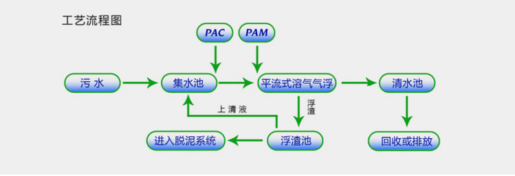 針對廢舊塑料清洗、破碎工序只對水中懸浮物含量有較高的要求。可以采用混凝處理工藝去除污水中的大部分懸浮物,再把污水回用到生產(chǎn)工序中去,達到減少污水排放量的目的。外排的污水可與生活污水混合提高其可生化性,再經(jīng)生物處理后排放,簡單回用可選氣浮設(shè)備。