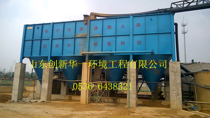 石材廢水中主要含有石粉(成分為SiO2、CaO和CaCO3等),少量金剛石細粒、磨料細粒以及沖洗泥砂等。相比磨機廢水,鋸機和切邊機兩種廢水的水質(zhì)更加相近,污水中顆粒更粗大且均含有少量的有機冷卻劑(主要為皂化物、太古油等)。通過調(diào)研和水質(zhì)分析可知,該廢水的特征污染物為懸浮物(SS),污水中顆粒呈懸浮和膠體狀態(tài),分散度高。為此,創(chuàng)新華一環(huán)保根據(jù)石材污水的上述特點專門研發(fā)的一體化凈水設備,經(jīng)過大量的實際運行實驗,效果非常理想。污泥則用泥漿脫水機處理,形成泥餅,工藝流程如下: