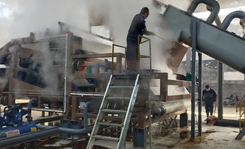 該設備是我公司根據(jù)糟渣纖維類行業(yè)特性,在傳統(tǒng)帶機基礎上升級改造的新一代脫水設備,具有處理能力大,脫水效率高,能耗低等優(yōu)點。它不僅解決了傳統(tǒng)普通雙網(wǎng)壓濾機對原料脫水時所出現(xiàn)的跑料問題,同時也解決了網(wǎng)兩端料壓力較小的問題,而且上網(wǎng)不受擠壓,網(wǎng)孔不易被纖維、污泥所堵塞。