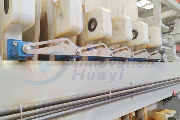 5、泥餅卸落: 濾板自動(dòng)開啟后,泥餅自動(dòng)脫落,再通過振打器清理干凈泥餅。