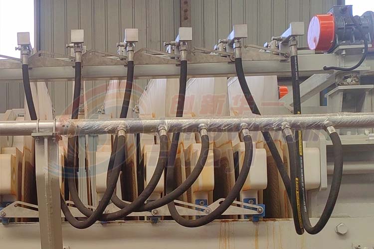 4、濾板開啟: 在擠壓過程結(jié)束后,釋放壓緊油缸的壓力拉開濾板。
