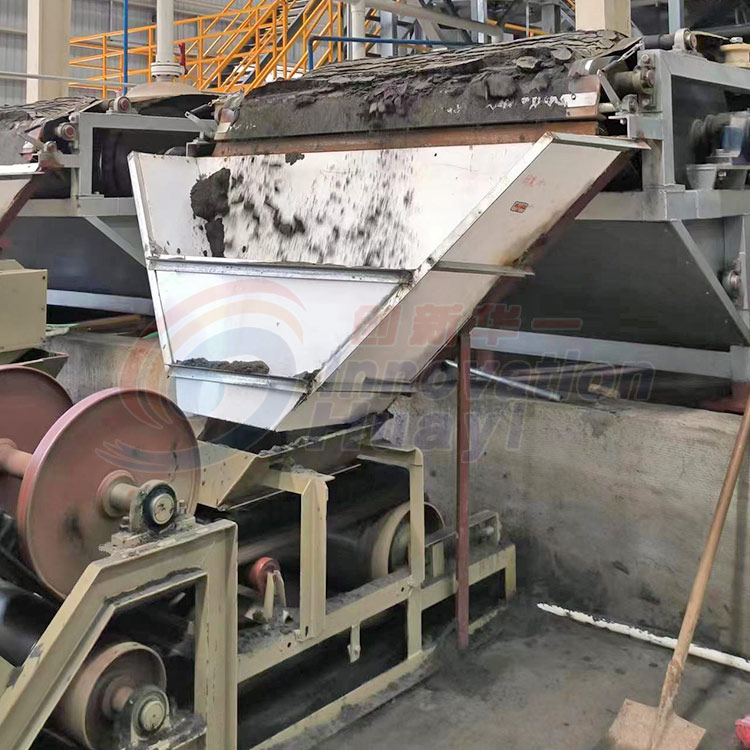尾礦帶式真空過濾機采用了固定真空盒,膠帶在真空盒上滑動,真空盒與膠帶間構成運動密封的結構型式,以真空負壓為推動動力實現固液分離的設備。在結構上,過濾區(qū)段沿水平長度方向布置,能連續(xù)自動完成過濾、濾餅洗滌、卸 渣、濾布再生等工藝操作,并且母液有與濾餅洗滌洗液可以分段收集。具有過濾效率高、生產能力大、洗滌效率好,濾餅水分低、操作靈活、維護簡單等優(yōu)點。