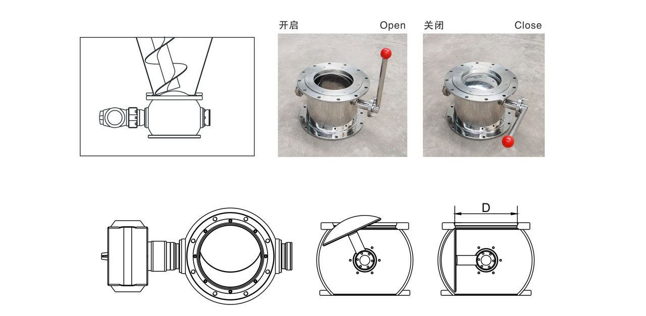 高溫出料閥可替代梅花閥、蝶閥、翻板閥安裝于雙螺旋錐形混合機(jī)底部,