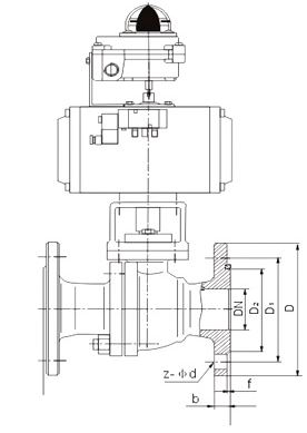 氣動(dòng)法蘭球閥尺寸: