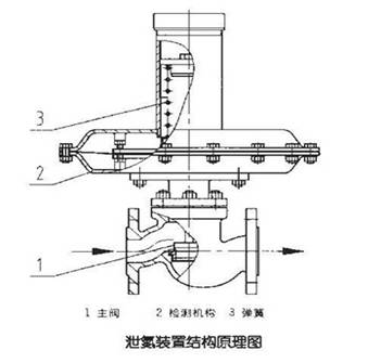 當儲罐進液閥開啟,向罐內添加物料時,液面上升,氣相部分容積減小,壓力升高,當罐內壓力升到高于泄氮裝置壓力設定值時,泄氮裝置打開,向外界釋放氮氣,使罐內壓力下降,降到泄氮裝置壓力設定點時,泄氮裝置自動關閉。